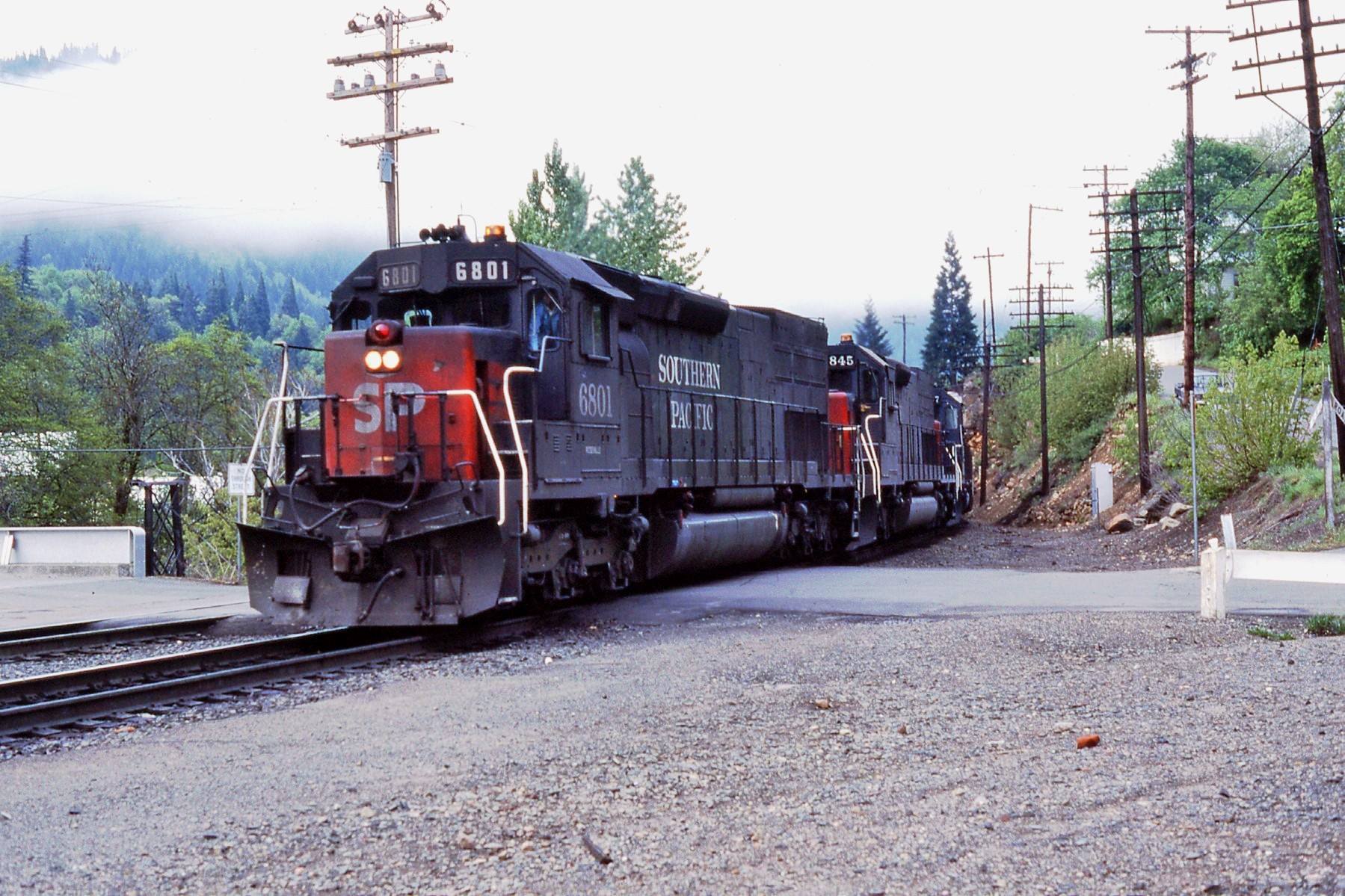 She was one of quite a few of SP's SD45T-2 units known to have been repainted into SP's "Speed Lettering" scheme at a point after the SP was bought by Rio Grande Industries in October 1988.