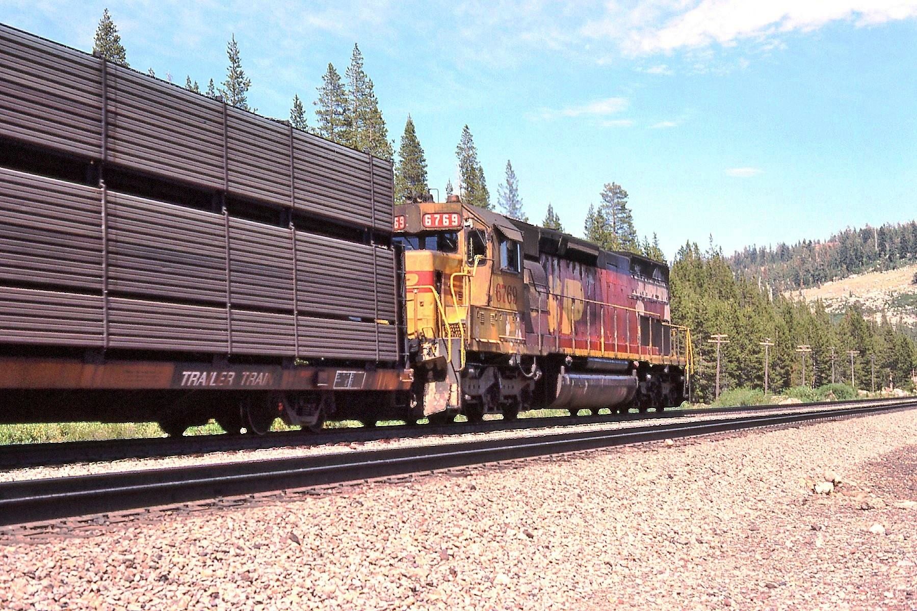 She was rebuilt and renumbered to SP 6769 as part of the SP's GRIP program on 06/23/1986. She emerged from rebuilding painted in kodachrome paint of the intended SPSF railroad.