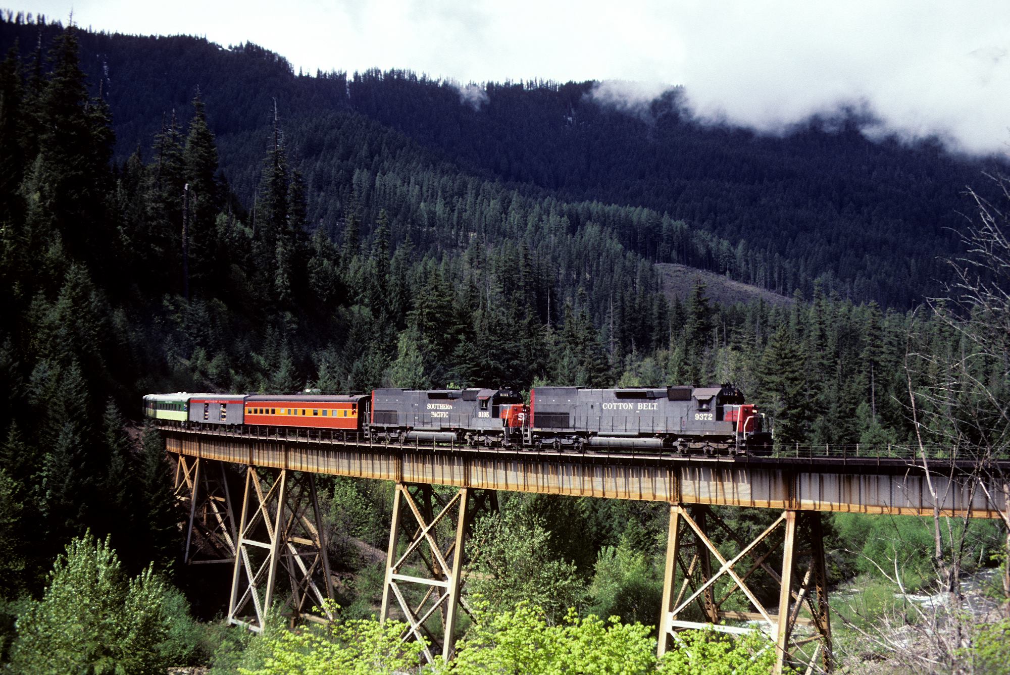 This loco was built in x/1975 with EMD construction number 74696-2. She was built as a freight engine. She was painted in standard for the time bloody nose colors and featured a full 5 light headlight arrangement on the front end. The rear featured xxxx.