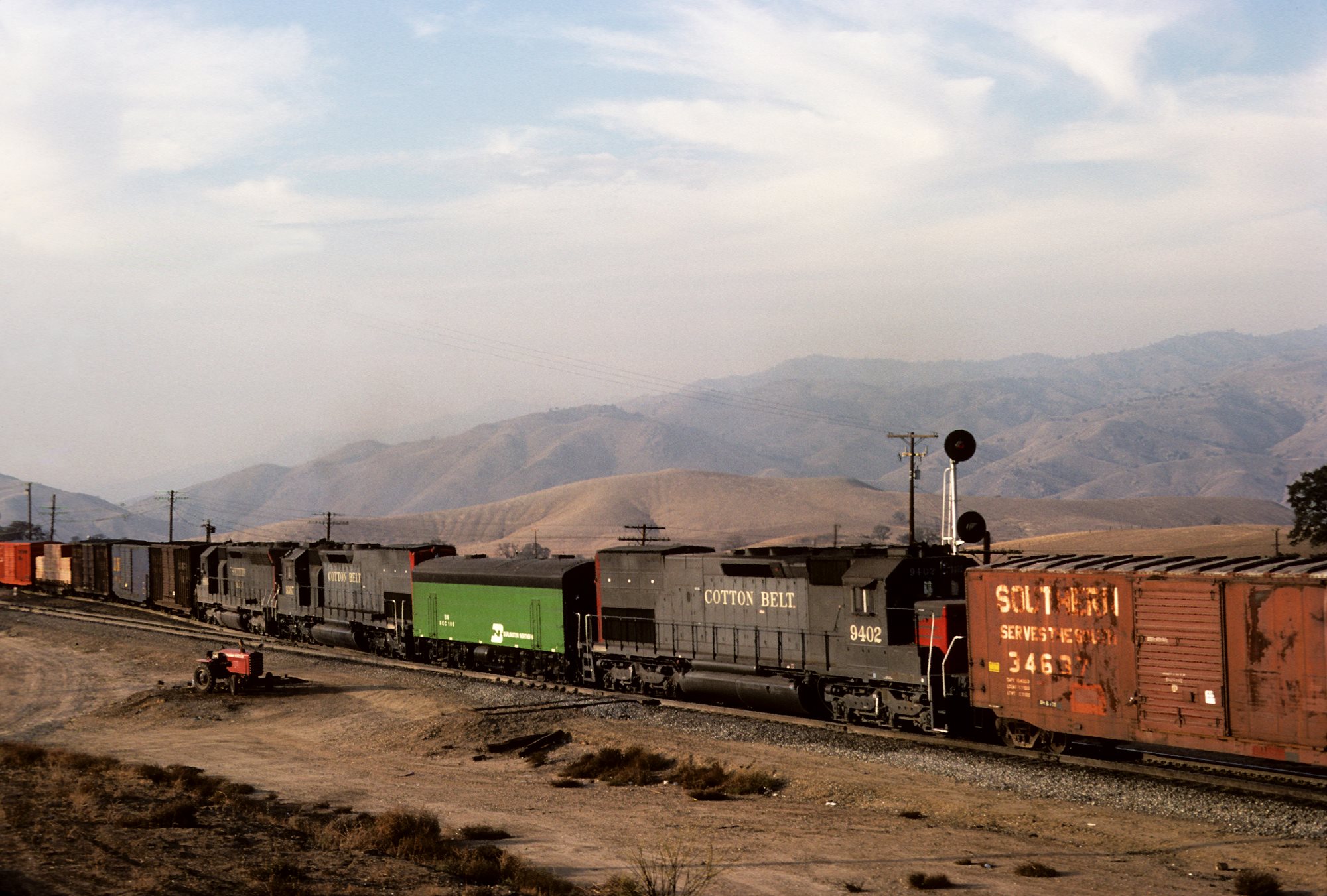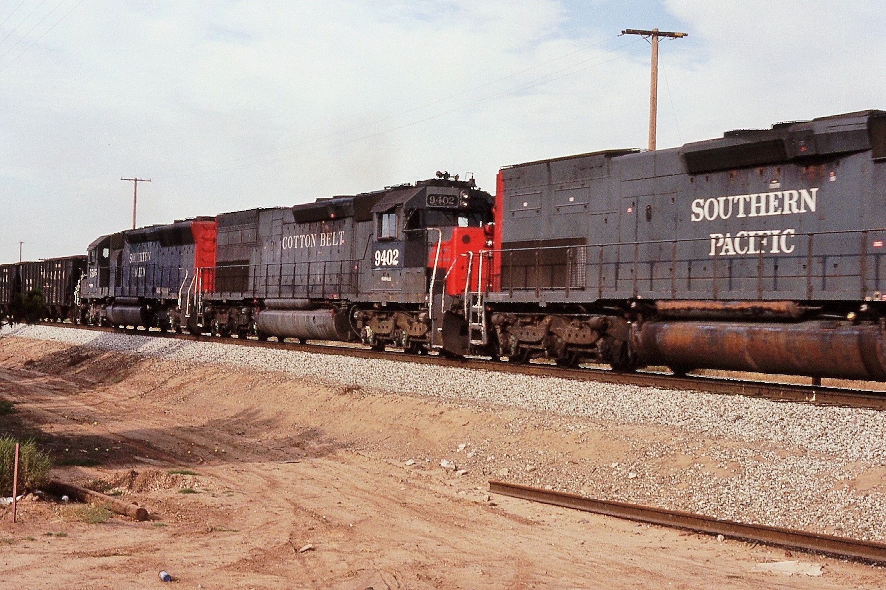 She was one of quite a few of SP's SD45T-2 units known to have been repainted into SP's "Speed Lettering" scheme at a point after the SP was bought by Rio Grande Industries in October 1988.