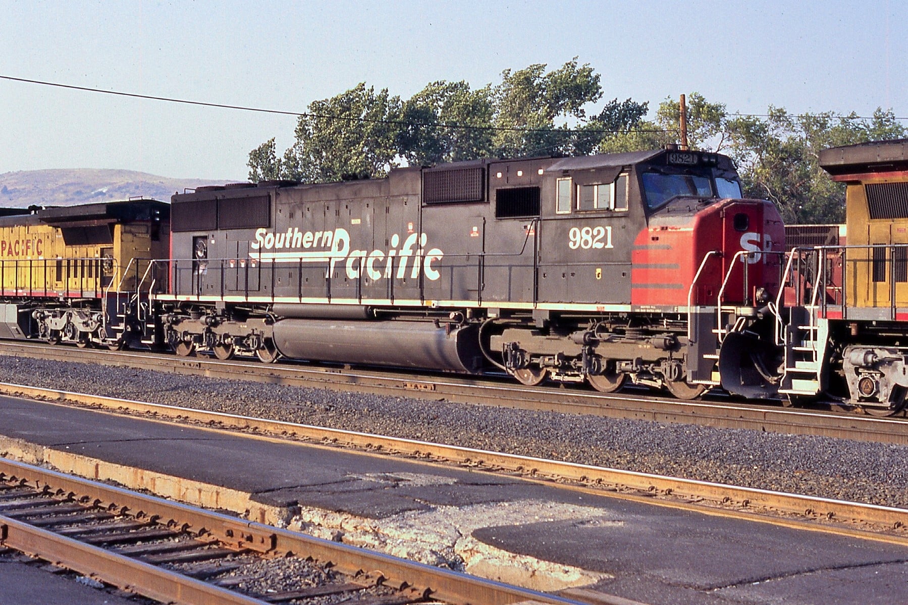 This loco was built in 8/1994 with EMD serial number 936438-22. She was built as a freight engine. She was painted in standard for the time bloody nose colors with SP speed lettering and a North American cab. Her headlight arrangement was a single sealed beam headlight each end and ditch lights along the front anticlimber only.