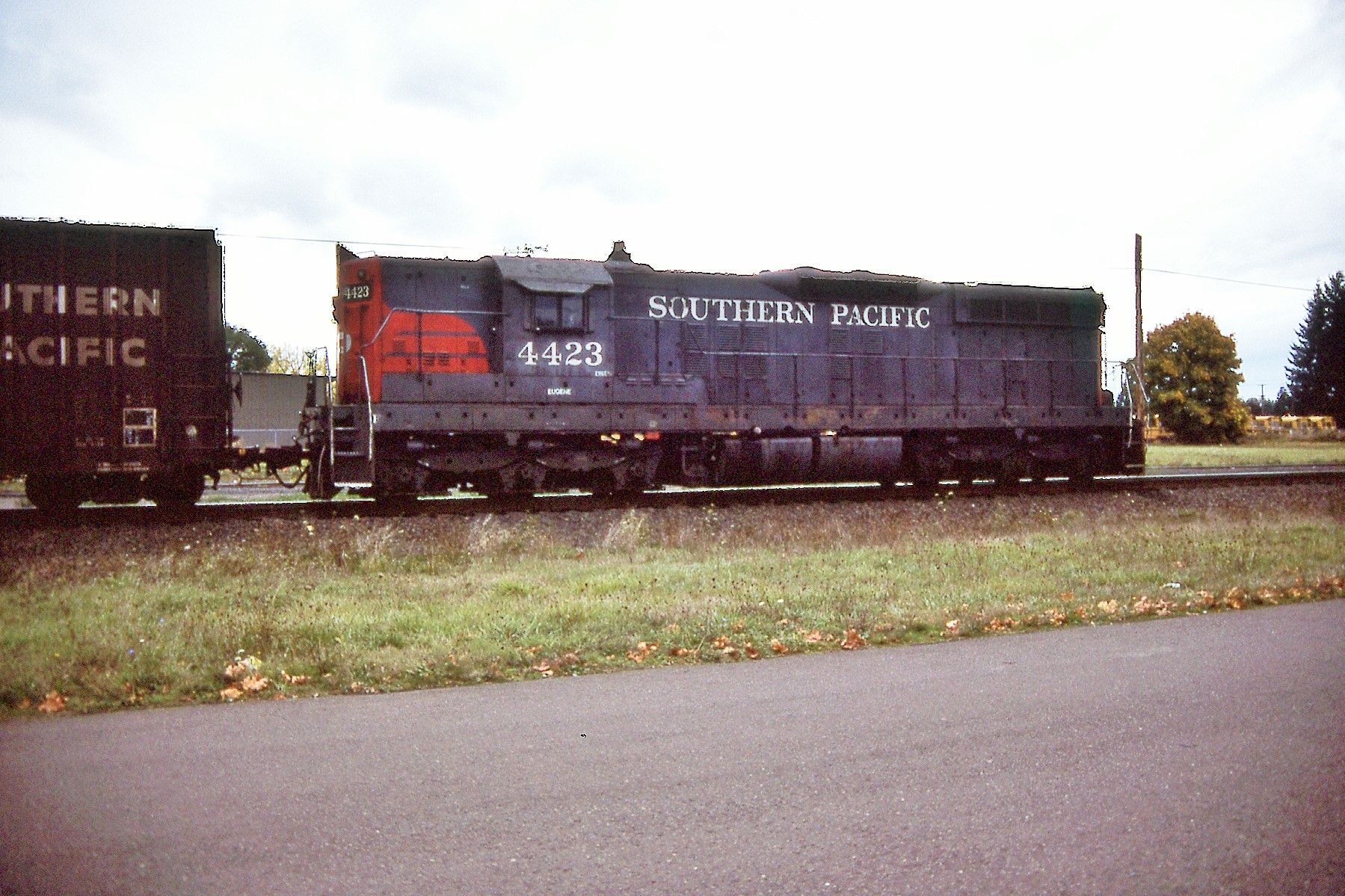 This loco was built in 3/1956 with EMD construction number 21297. She was built with boiler controls, but without a steam generator or water tank for reserve passenger service. This meant that it needed a trailing unit such as an F7B to operate in multiple with to provide steam heat to a passenger train. She also featured dual fuel tanks for dual fuel operation. She was painted in standard for the time "black widow" colors and featured a full 5 light headlight arrangement on each end.