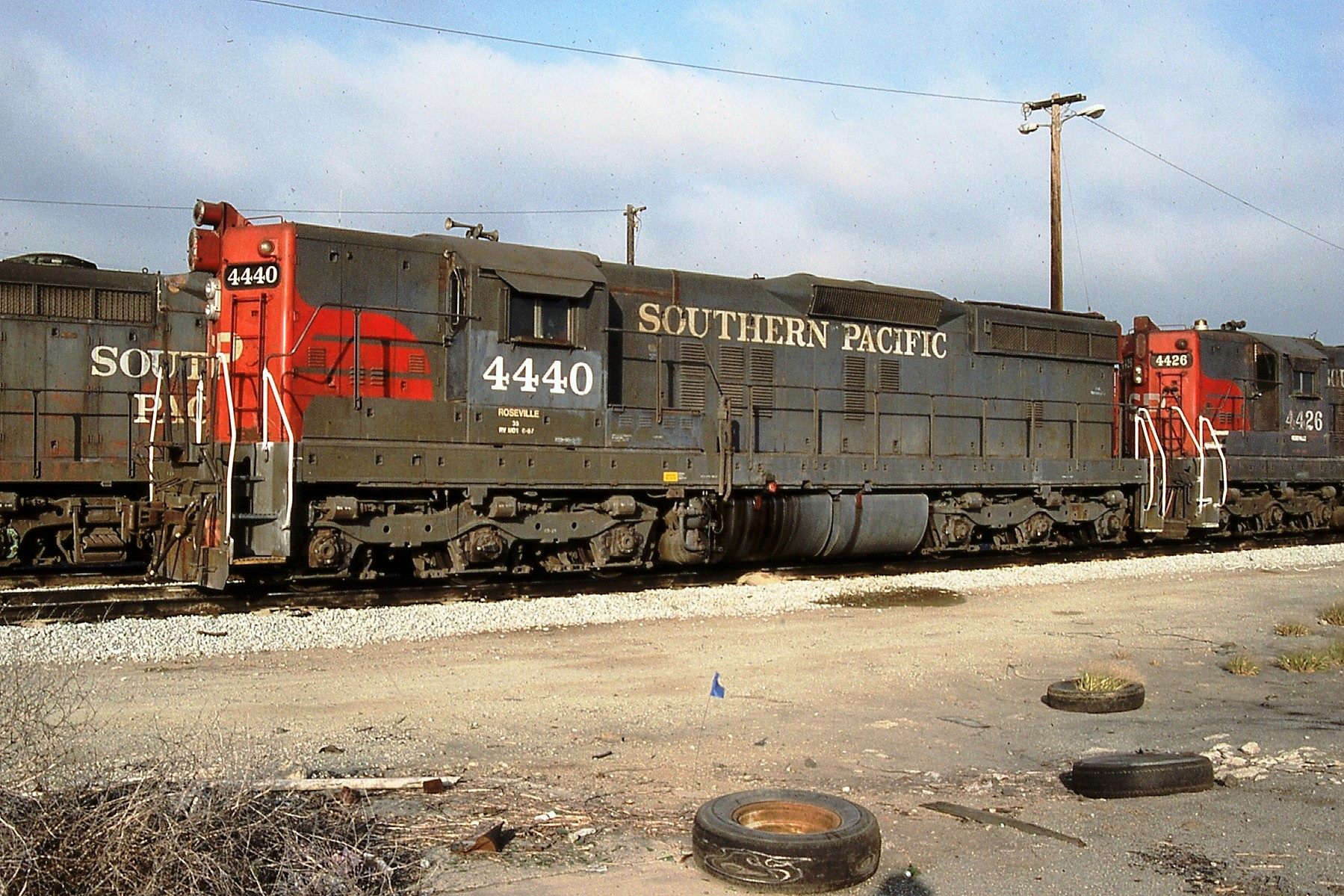 This loco was built in 4/1956 with EMD construction number 21316. She was built with boiler controls, but without a steam generator or water tank for reserve passenger service. This meant that she needed a trailing unit such as an F7B to operate in multiple with to provide steam heat to a passenger train. She also featured dual fuel tanks for dual fuel operation. She was painted in standard for the time "black widow" colors and featured a full 5 light headlight arrangement on each end.