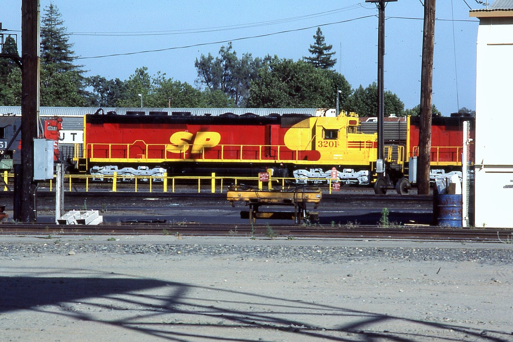 This loco was built in 5/1967 with EMD construction number 7955-2 and serial number 32850. She featured a full SP light package on the front consisting of a sealed beam light with UDE light cluster in her nose and a Gyralight between her numberboards, a single sealed beam light mounted on her rear and a steam generator for passenger heating.