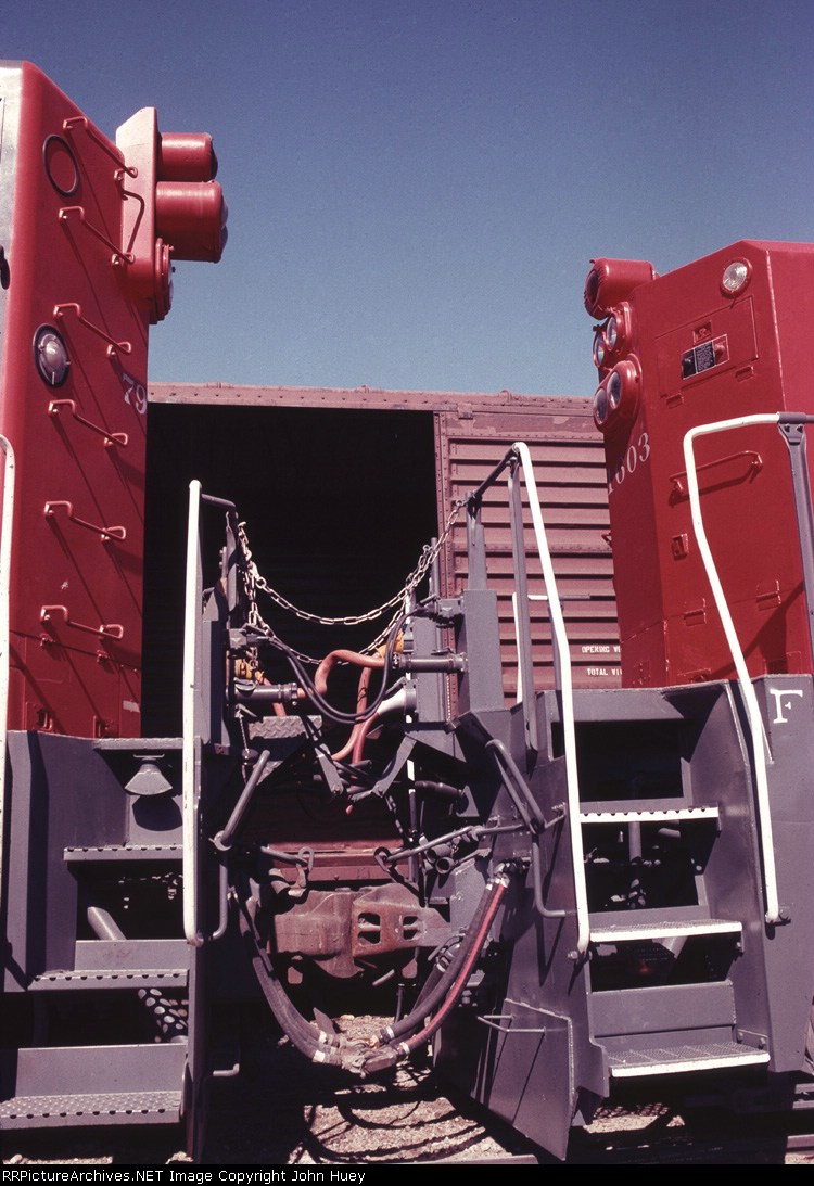 This loco was built in 2/1964 with GE construction number 34773 as SP 7536. She became SP 6736 in the 1965 system renumbering. She was later rebuilt by SP Sacramento Shops on 06/30/1981 as a Tractive Effort Booster Unit.