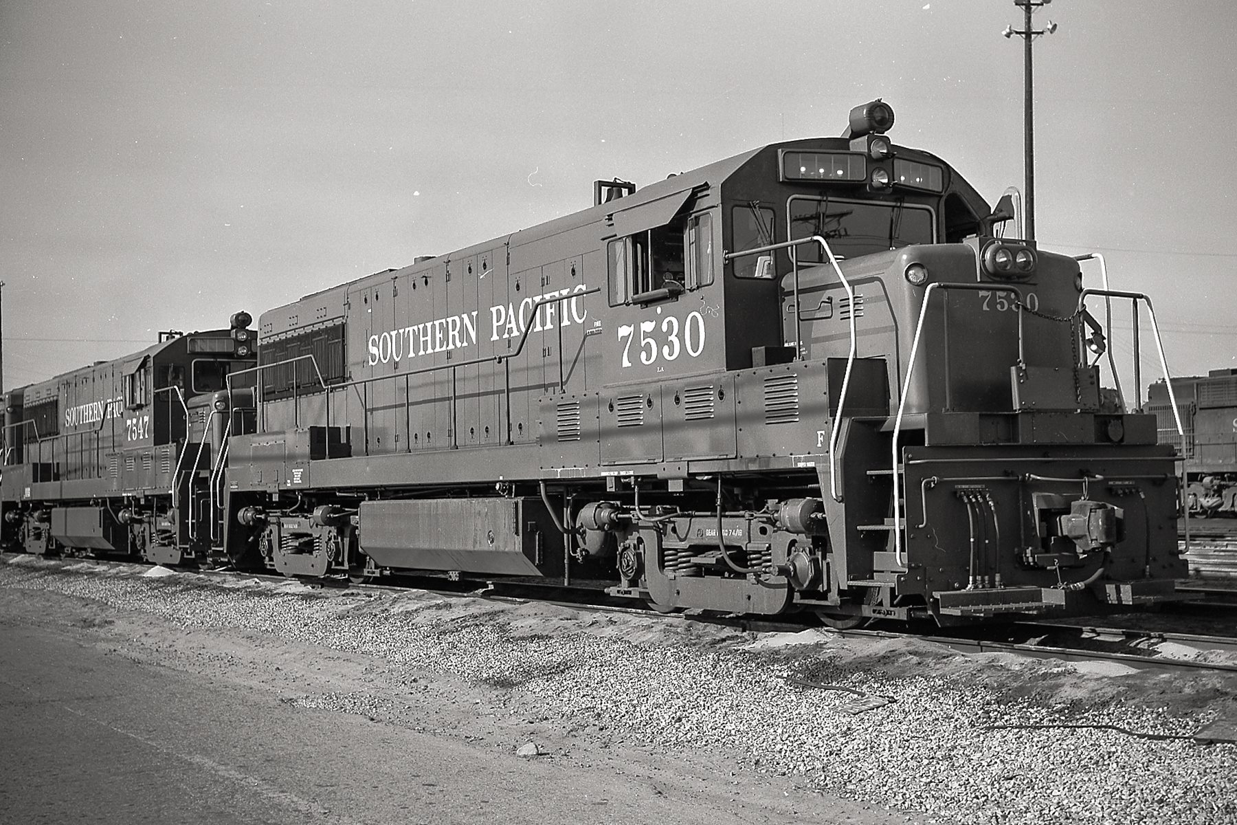 This loco was built in 1/1964 with GE construction number 34767. It was built as a freight engine. It was painted in standard for the time bloody nose colors and featured a full 5 light headlight arrangement on the front and a standard dual sealed beam headlight on the rear.