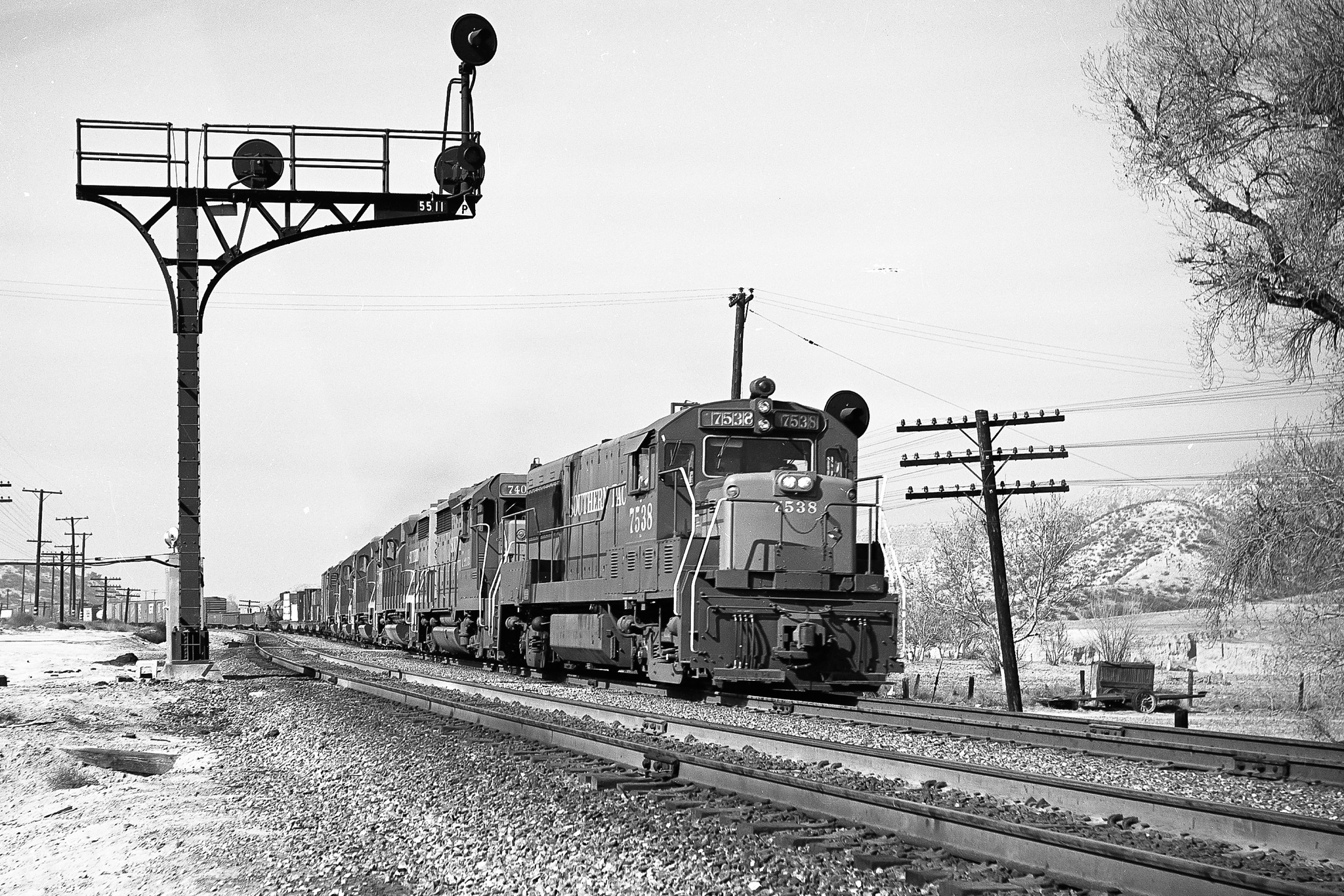 This loco was built in 2/1964 with GE serial number 34775. She was built as a freight engine. She was painted in standard for the time bloody nose colors and featured a full 5 light headlight arrangement on the front and a standard dual sealed beam headlight on the rear.