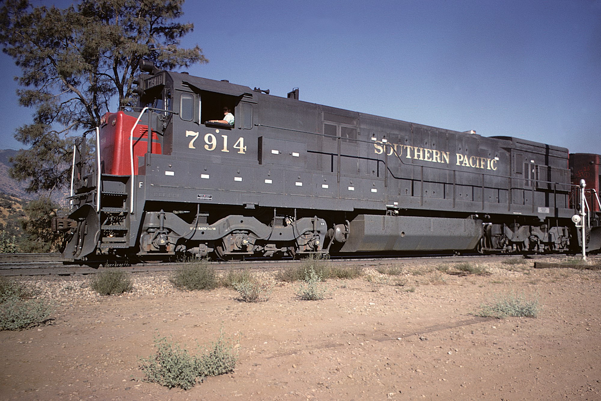 This loco was built in 4/1968 with GE construction number 33634. She was built as a freight engine. She was painted in standard for the time bloody nose colors and featured a full 5 light headlight arrangement on the front end and a single sealed beam headlight on the rear.
