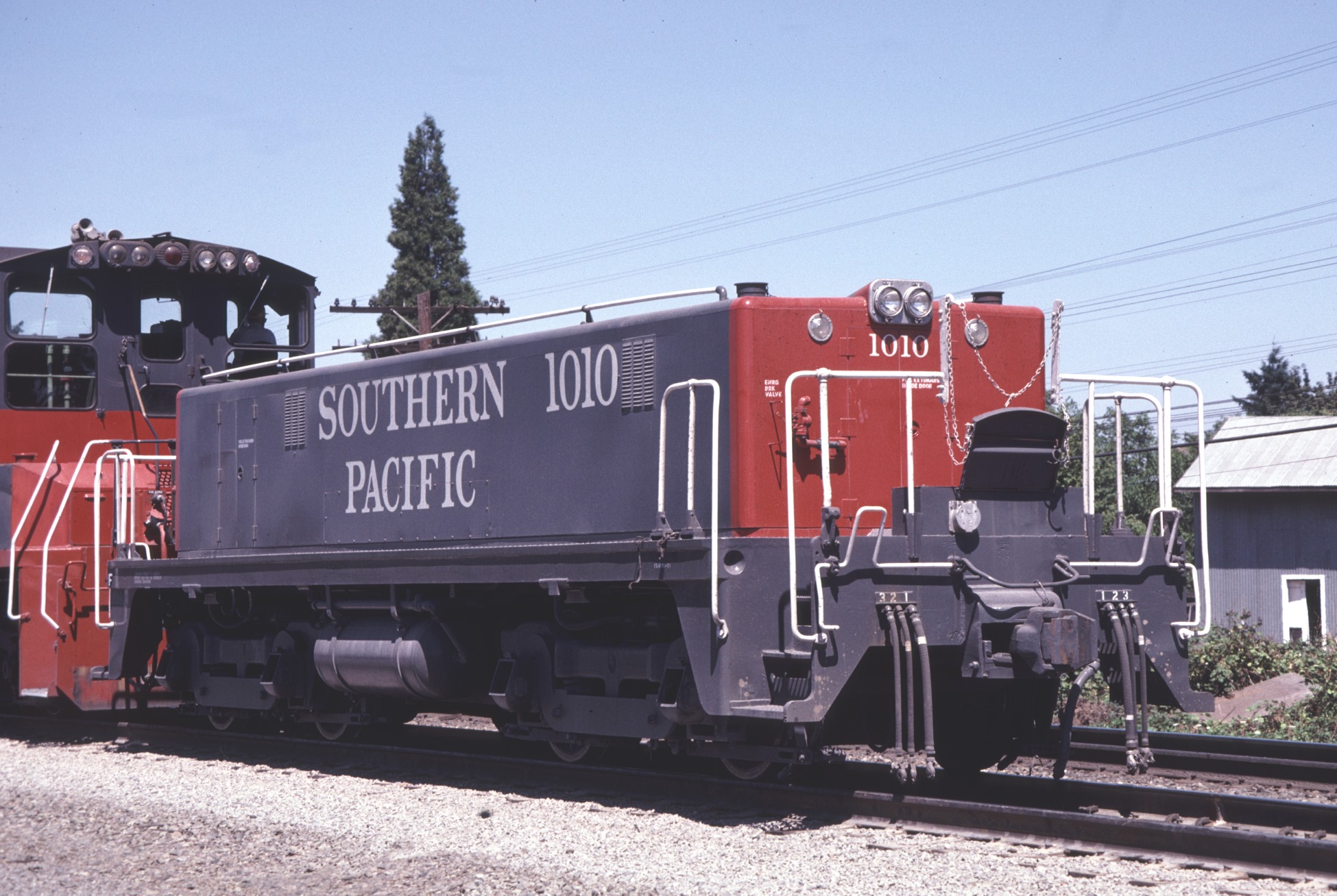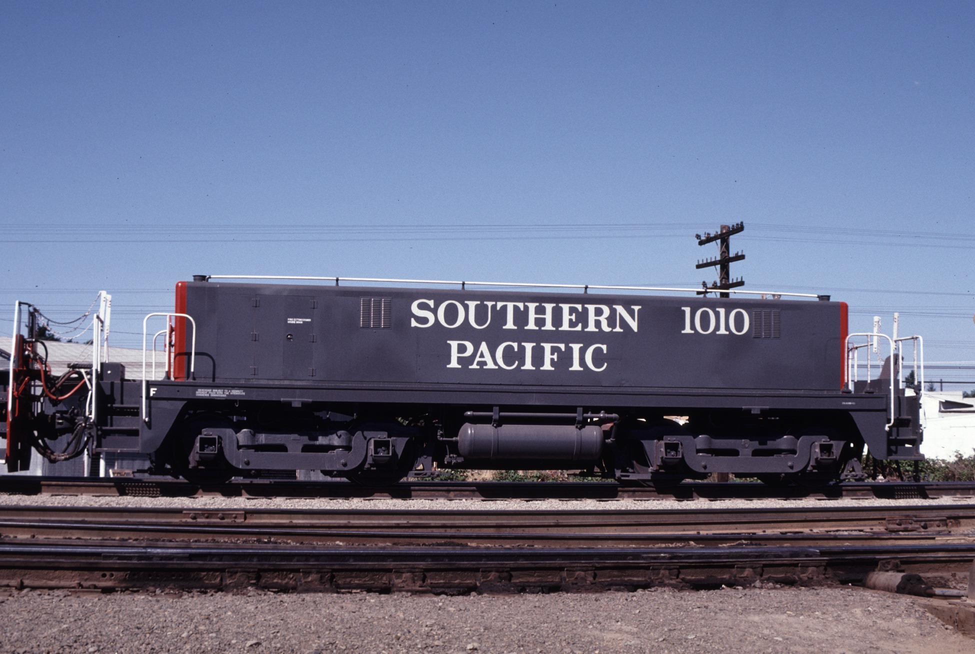 This loco was originally built in 3/1950 as an EMD model SW7 as L&N 2247 with serial number 9774 and frame number 4009-3. She was later rebuilt by GE Apparatus Service Shops at Minneapolis, MN in 6/1979 as a slug for use at various SP yards with MP15AC units and later SW1500's.