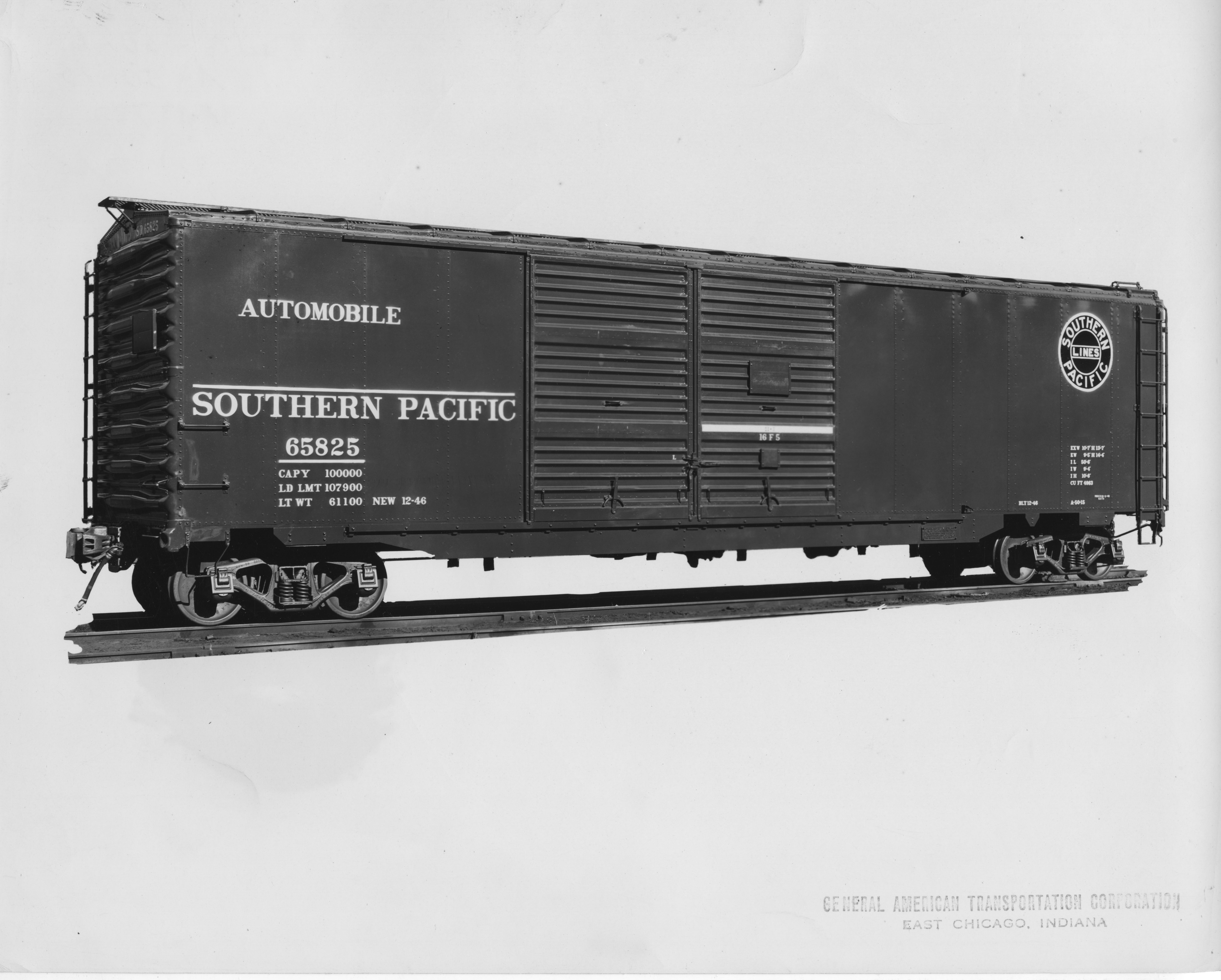 These 50'-6" automobile box cars were built by General American in 11-12/1946. They featured double sliding doors for a **'-0" opening and 4963 ft3 capacity.