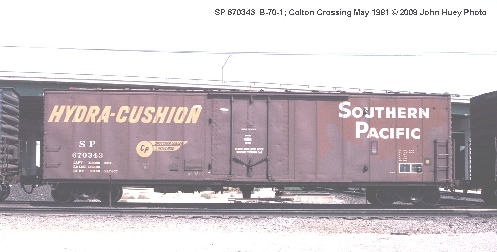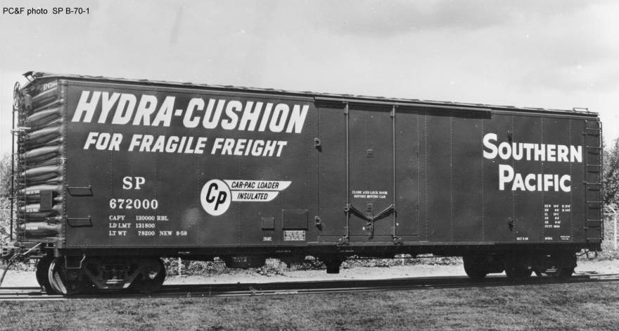 These 50'-1" insulated box cars were built by PC&F in 1959-60. They featured 9' Youngstown plug doors, Hydra-Cushion underframes, Car-Pac loaders and 4644 ft3 capacity. Many of these cars were renumbered as shown and some were later rebuilt as B-70-1R's.
