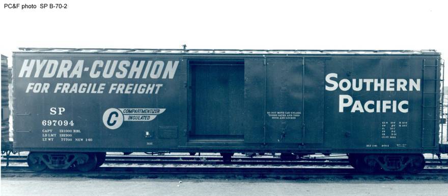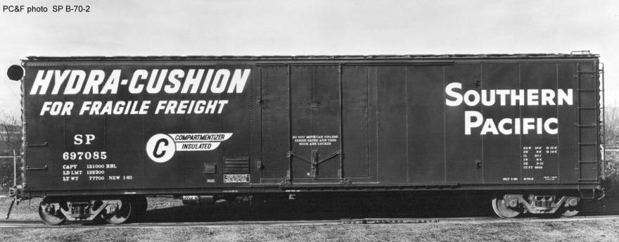These 50'-1" insulated box cars were built by PC&F in 1960 and featured 9'-0" Youngstown plug doors, Hydra-Cushion underframes, Compartmentizers and 4644 ft3 capacity.