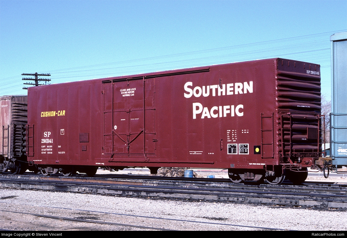 These 50'-6" insulated box cars were built by Pacific Car & Foundry in 1966-1967. They featured 4961 ft3 capacity, 10'-6" plug doors and Hydra Cushion underframes. They were transferred to SP, repainted and renumbered as above in 1978-79.