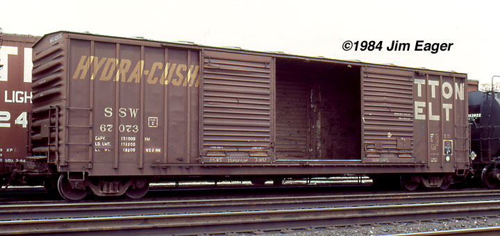 SSW 66529-66803 5-7/1973 Youngstown doors SSW 66804-66894 9/1973 Youngstown doors DF loaders for auto parts service (batteries and engine blocks) SSW 66895-67149 6-9/1973 Youngstown doors SSW 67150-67349 11-12/1974 Superior doors Golden West numbers: GVSR 769000-769039 * GVSR 769100-769157 * GVSR 769175-769224 * GVSR 769500-769575 @ (to SP 231300-231339) VCY 769640-769647 # (to SP 231350-231358) * = rebuilt with original double doors retained @ = rebuilt with 10' sliding doors # = rebuilt with 12' plug doors