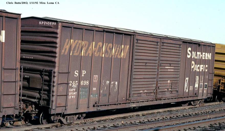 Many cars of this class were repainted and renumbered as Golden West Service cars. At the time of rebuilding the original double doors were changed to either a single 10' sliding door or 12' plug door or not altered. Some of the cars with new single doors were subsequently re-numbered into a new SP series (230000's) by UP in lieu of into their original numbers.