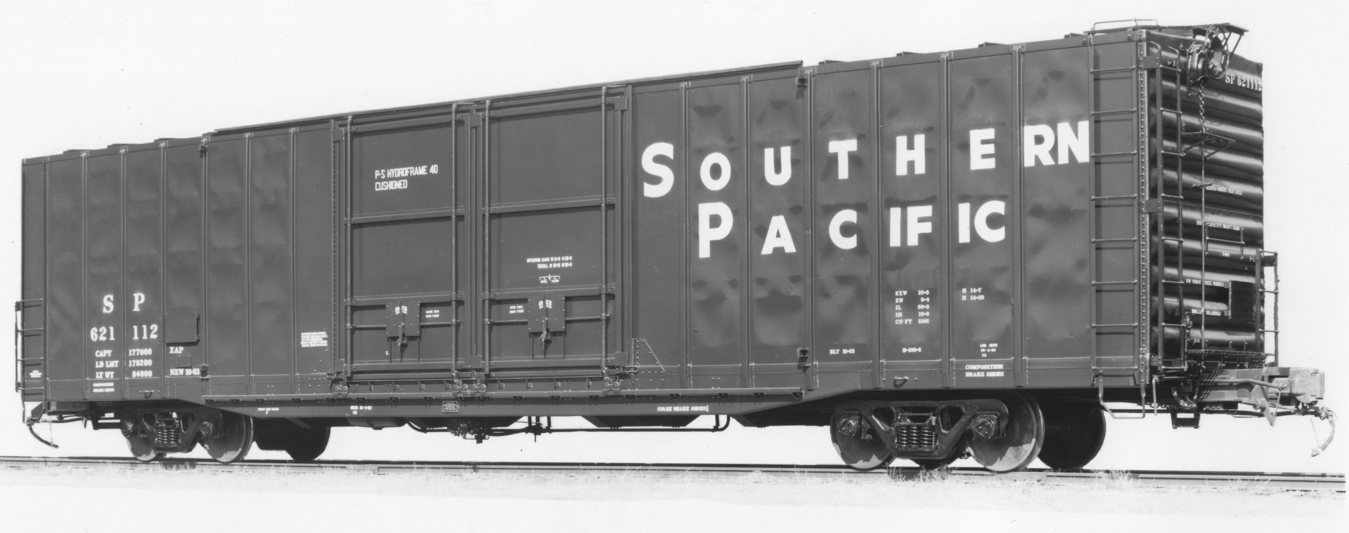 These 60'-9" box cars were built by PS as above in 10/1963. They featured HF40 underframes, two 8'-0" plug doors on each side and 5991 ft3 capacity.
