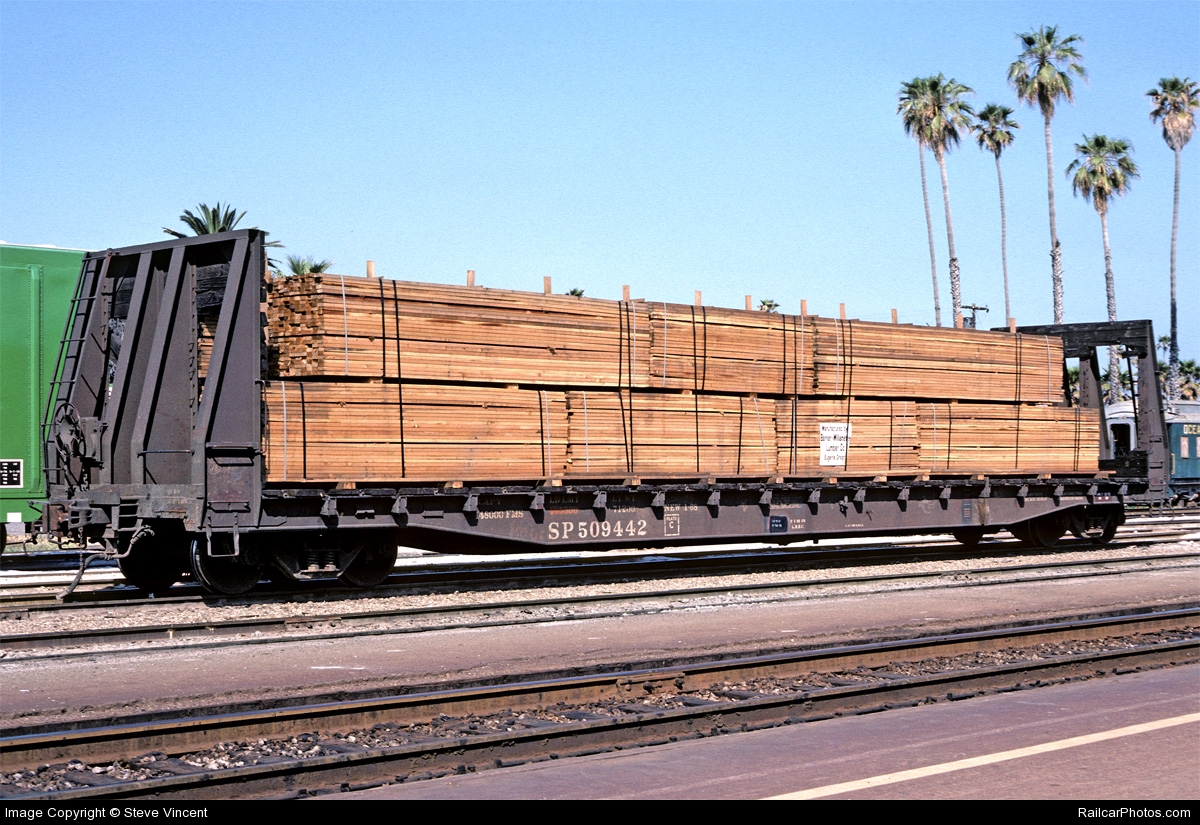 These flat cars were built by FMC-GBEC (Lot 15879) in 1-2/1968. They featured bulkheads with 57'-0" loading platforms.