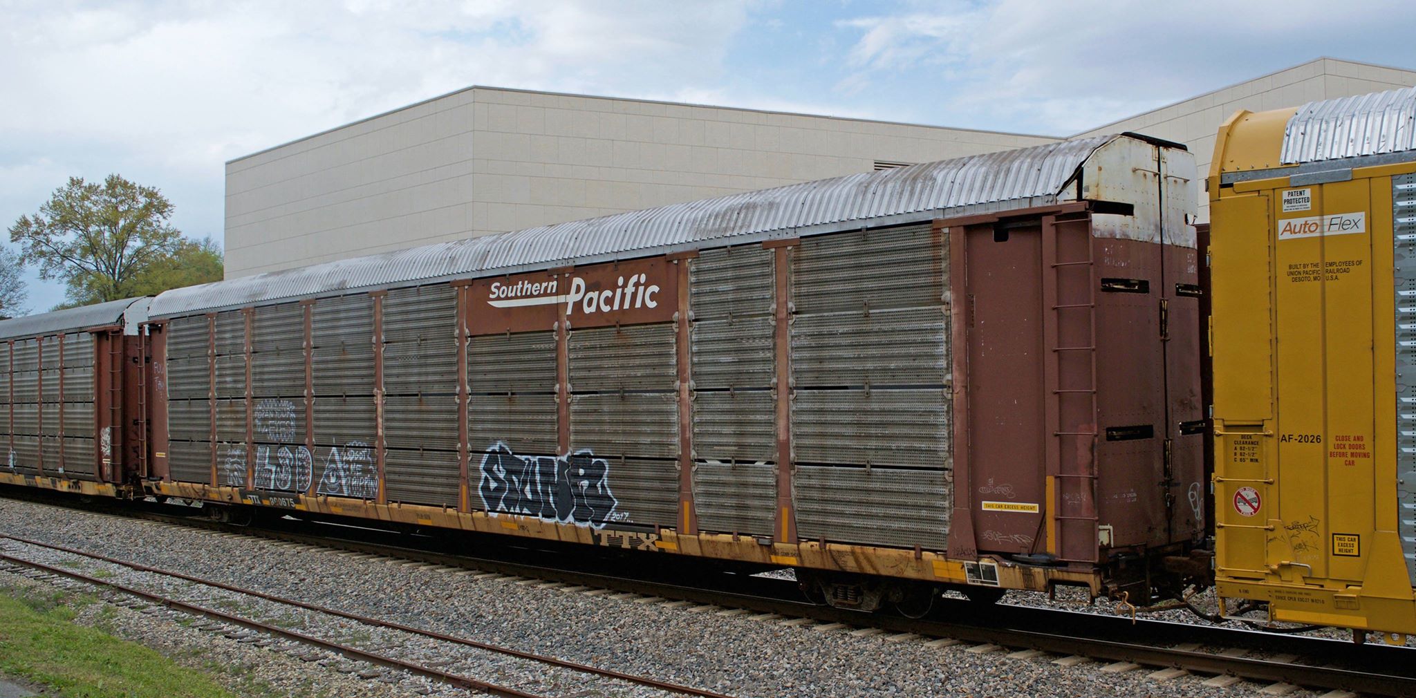 These 150 SP Thrall bi-level auto racks were applied to rebuilt wide-body, low-level, bowl-deck flats in the ETTX 800xxx, 801xxx, 802xxx, 803xxx, 810xxx, 900xxx, 901xxx, 902xxx, 903xxx, 904xxx, 905xxx, 906xxx, 907xxx, 908xxx and 909xxx number ranges.