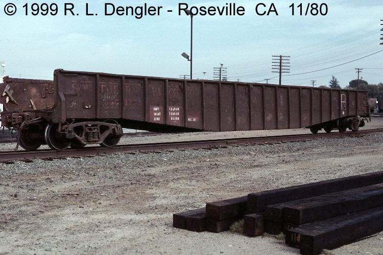 These 65'-6" drop-end mill gondolas were all built to the same basic design by Ralston in 1950 and featured steel floors and 1778 ft3 capacity.