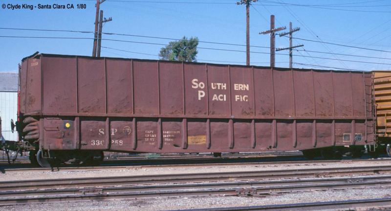 The SP rebuilt four of the original cars not long after delivery for ferreomanganese service for Kaiser Steel. There is a nice series of detail shots of one of the conversions in Tony Thompson's book SP Freight Cars - Vol I on pages 231-232. They were equipped with ten removable bins for loading the product which were kept in place by a steel and wood frame built into the cars.