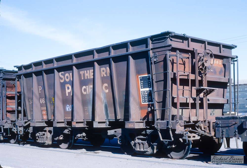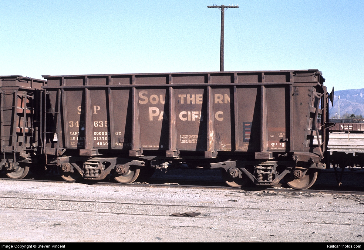 These 25'-9" ore gondollas were built by PC&F in 1962. They featured 1350 ft3 capacity when new. In the mid 1960's, the cars were modified at SP's Sacremento Shops to recieve 12 inchside and end extensions to accomodate additional ore bringing their capacity to 1602 ft3. Around 1969 a group of around 30 cars (exclusively from the G-100-6 class) were further modified with an additonal 12 inch side and end extension bringing their capacity to 1853 ft3. These cars were used in captive service hauling ore from Kaiser Steel's mine to Los Angeles for export.