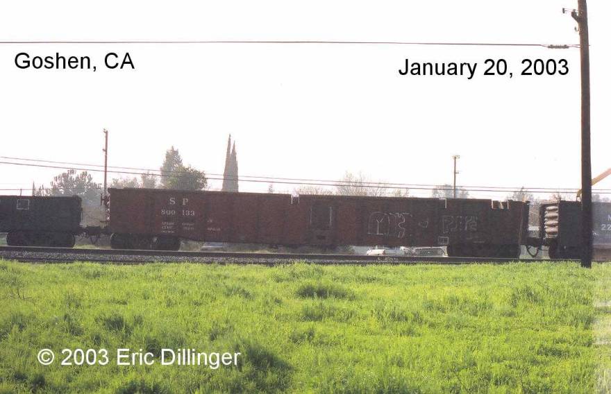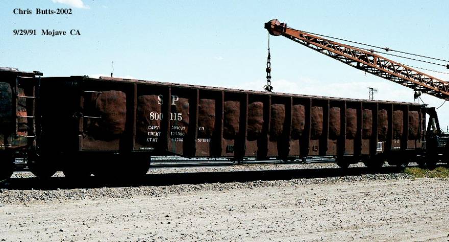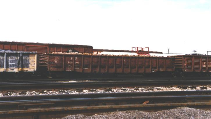 I'll let Jim Kinkaid tell you about it in his own words, "Regarding SP 800100-800149, we are now dang near 100 percent that these cars are ex-MKT. In fact we are as certain as we can be lacking official documents. Here is how the story goes: The cars were originally built for MKT as 12400-12599 by TC CH in 10-67. I think that these cars were bought by MKT on lease. By 1971 they had subleased to the BN. BN diagram book confirms 557800-557999 as MKT 12400-12599. Found a photo of one and it is the same car. During that point in time both roads carred these in the Register listings, though the MKT listing shows zero quantity. For whatever reason (lack of business, cannot afford) the MKT subleases to BN. Circa 7-1975 MKT gives up and BN takes over lease. The 15-year lease expires 10-83 or thereabouts and BN refuses cars, which return to lessor. (BN carries full series (well, 9 gone) until 10-83. 1-84 shows all missing, no series, nothing.) SP picks up 50 (we know that the SP reweighs two cars, mine and the car Eric has data on, 12-83) and sends into service as phantom B-100-8-B, even though they probably should have been classed otherwise. By design and similarilty, I'd say that the SP should have reclassed as B-100-23B or -32B since both of those classes were TC CH 2244 all-welded cars. Only real difference I can see is he number of posts (though I don't know off hand about floors, tiedowns and brake type, etc). All the MKT-BN-SP dimensions match exactly, and the photos all show the exact same design, even down to the top chord reinforcement and the tie down loops welded thereto. I don't think that the SP got the other 145 (or whatever was left) or I would have heard about it by now from you guys. Anyhow, that's my story and I'm sticking to it."