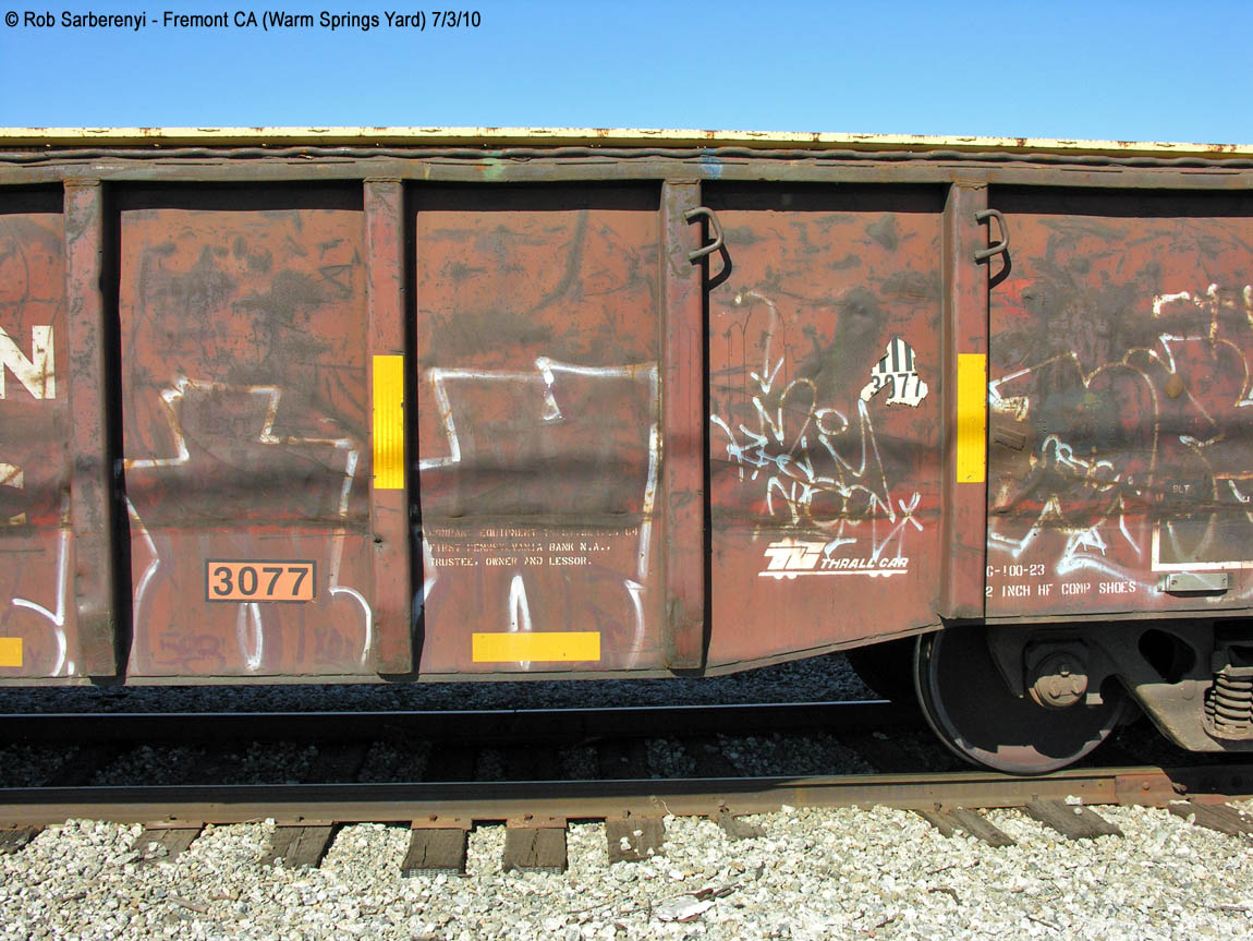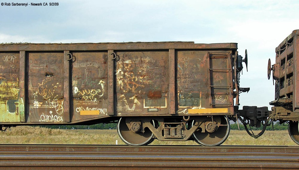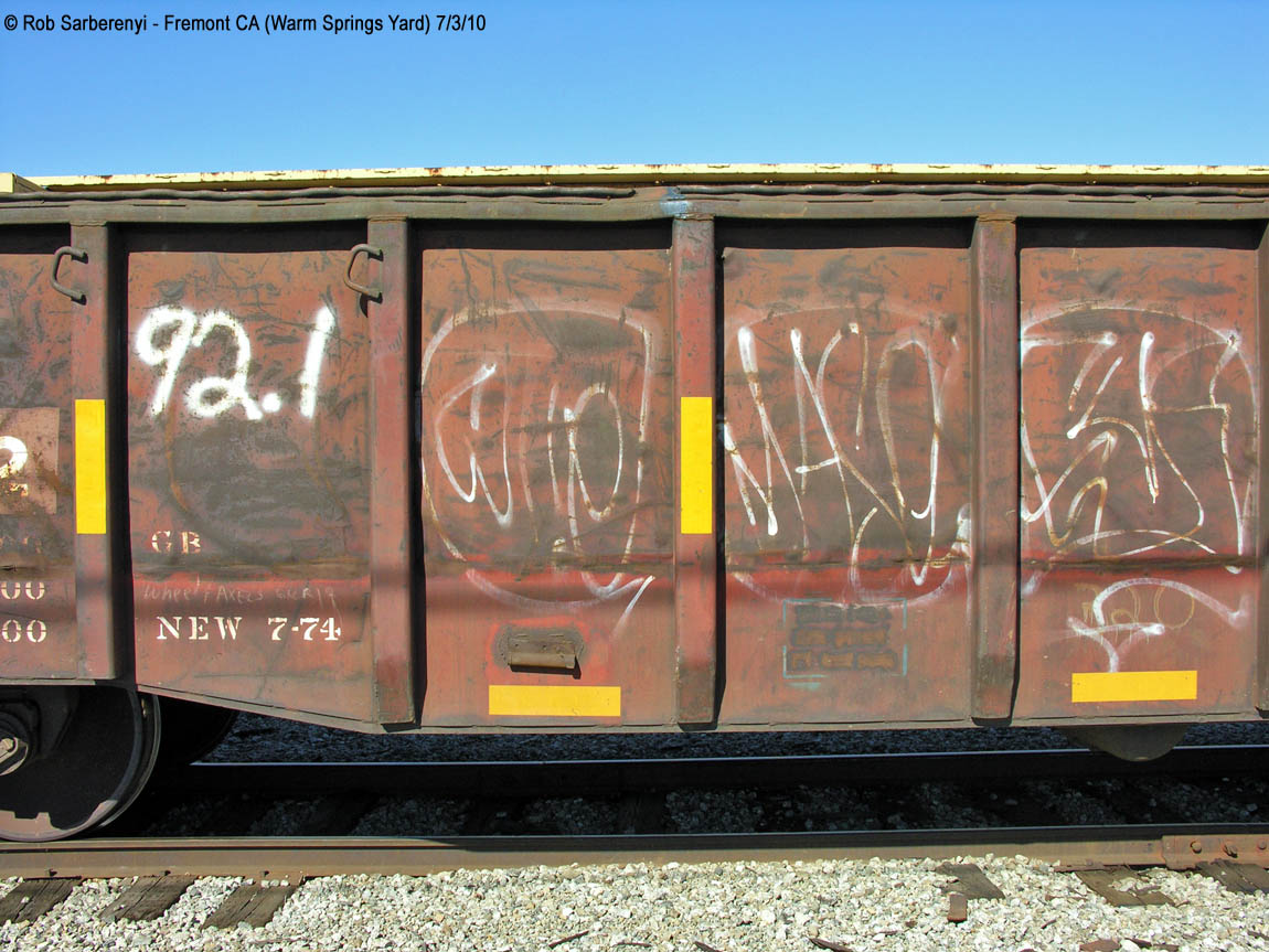 These 52'-6" gondolas were built by Thrall in 1974.