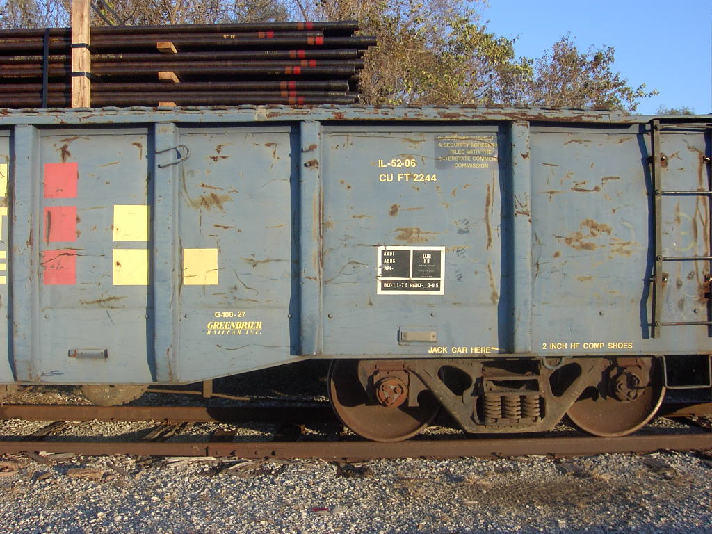 These 52'-6", 100-ton gondolas were built by PC&F in 1975-76. They featured fixed ends and 2244 ft3 capacity.