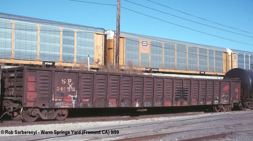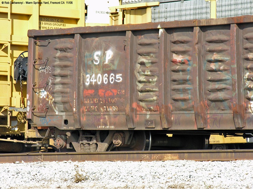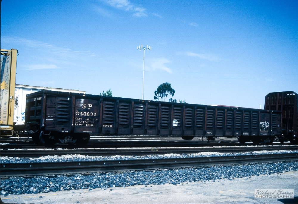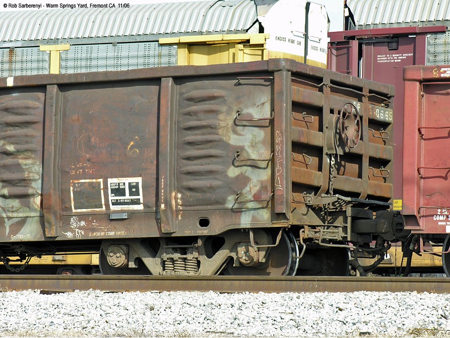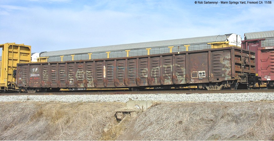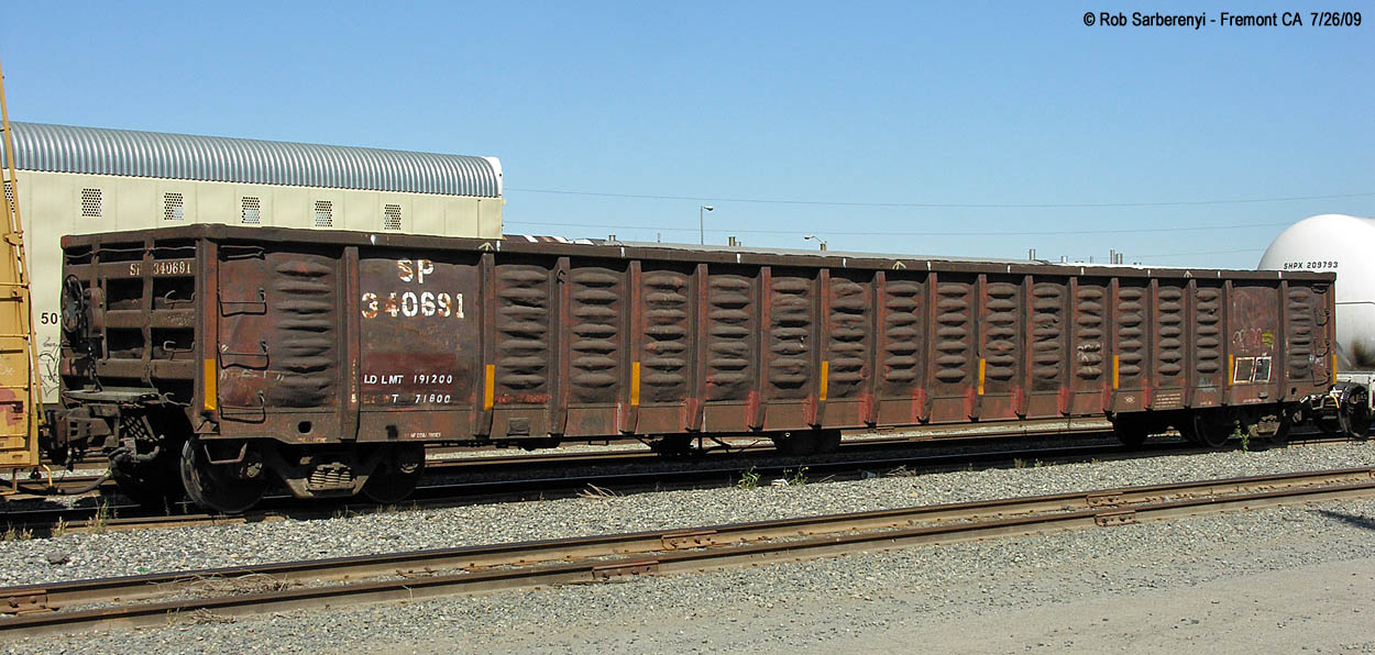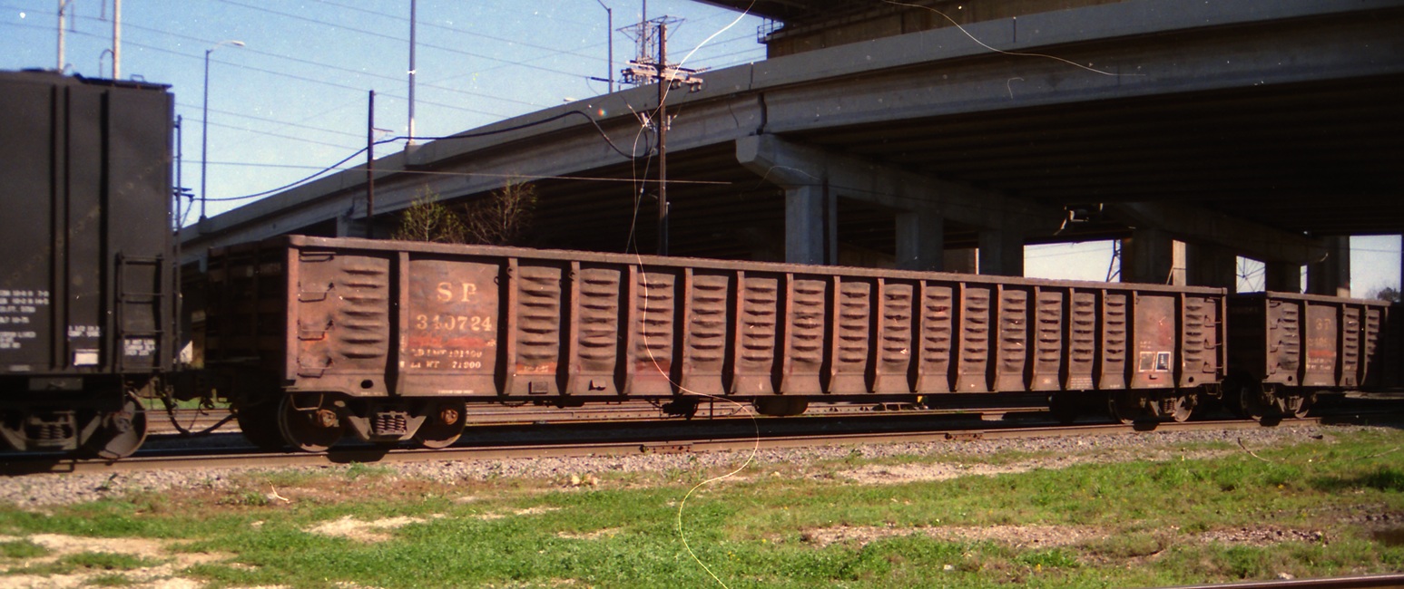 These 65'-6" mill gondolas were built by Greenville Steel Car (Order xxxx) in x/1980. They featured corrugated sides, 5'-6" inside height and 3242 ft3 capacity. They are the only 65' gons on the SP with corrugated sides.
