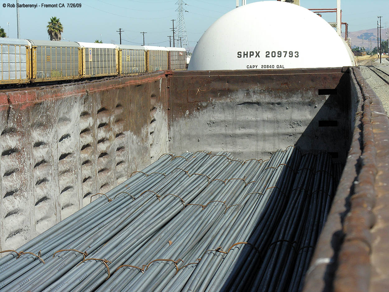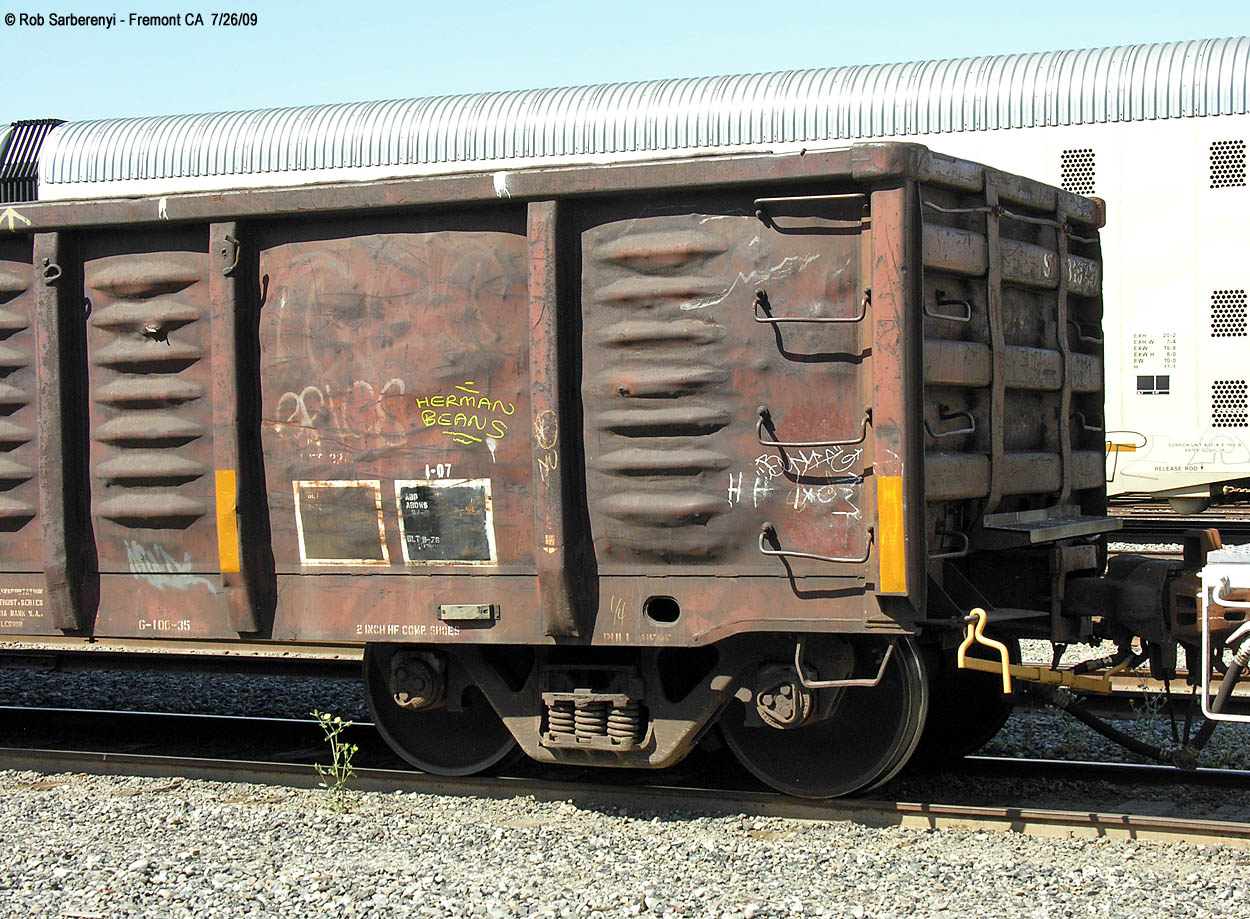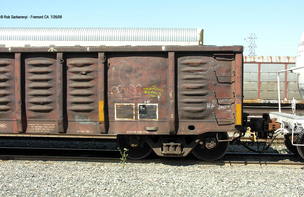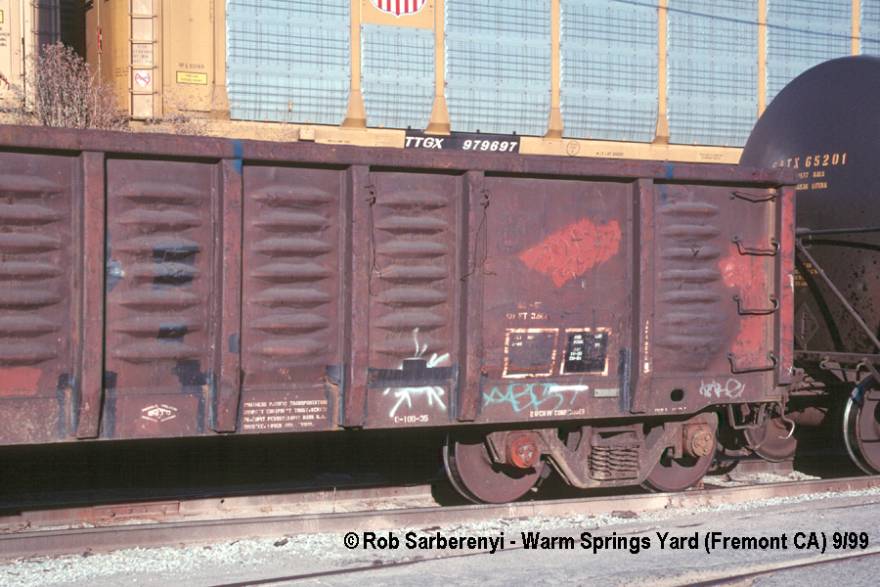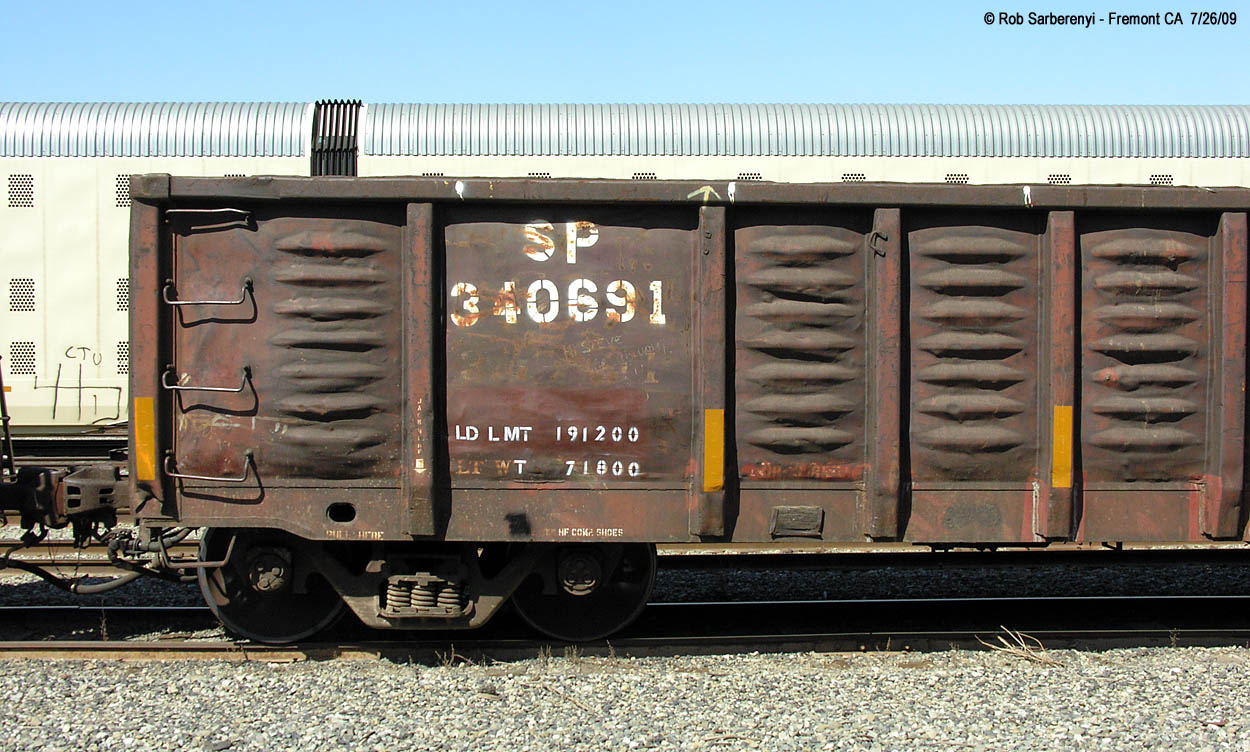 These 65'-6" mill gondolas were built by Greenville Steel Car (Order xxxx) in x/1980. They featured corrugated sides, 5'-6" inside height and 3242 ft3 capacity. They are the only 65' gons on the SP with corrugated sides.