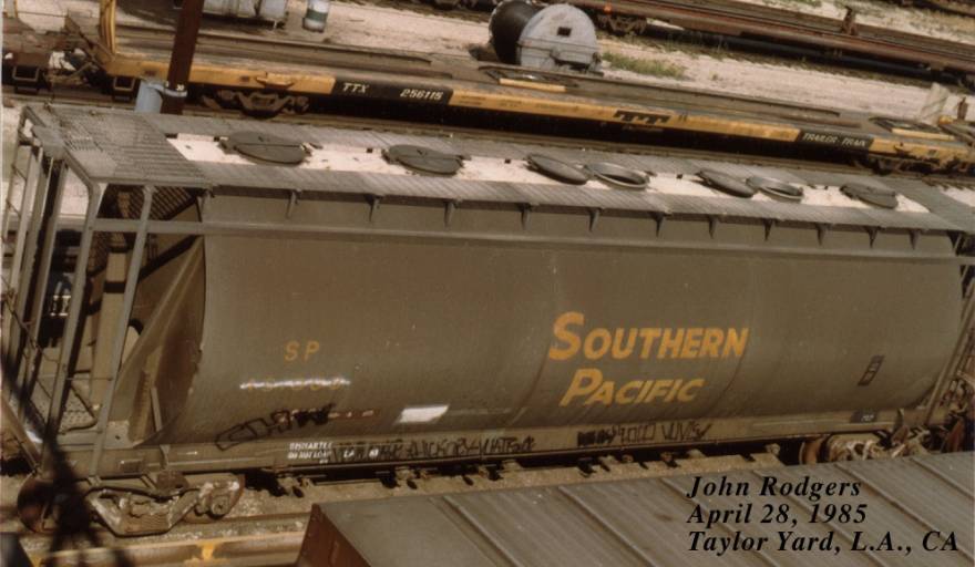 These cars were built by AC&F in 1962. All were of 3960 ft3 capacity and featured aluminum bodies with yellow lettering, (5) 30" round roof hatches and (6) gravity-pneumatic unloading hatches. The outlets were two per internal compartment so these are actually 3-bay covered hoppers. Anyone having an in-service photo of one of these cars please let me know as they were rather camera shy.