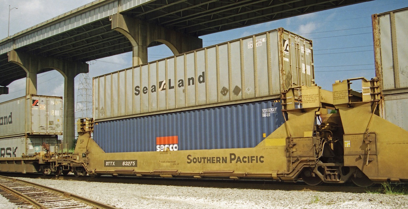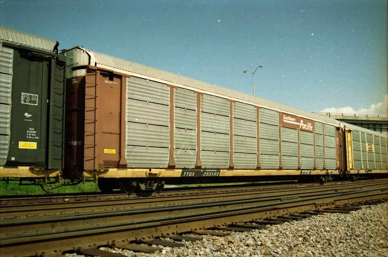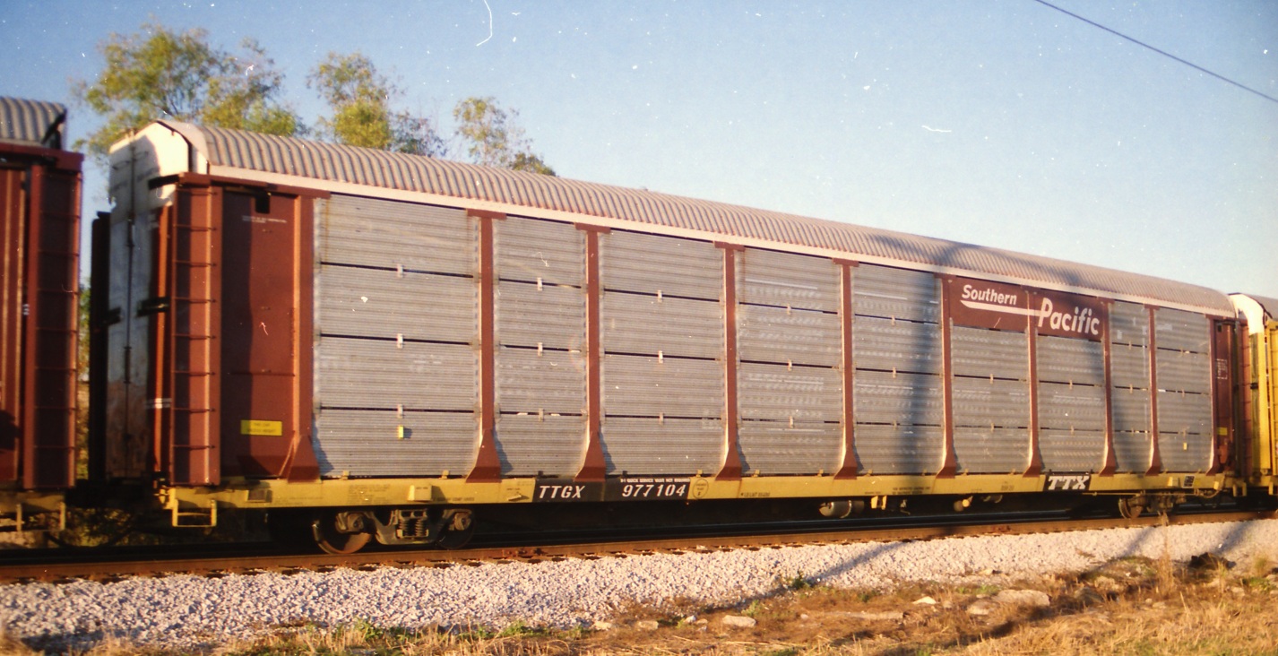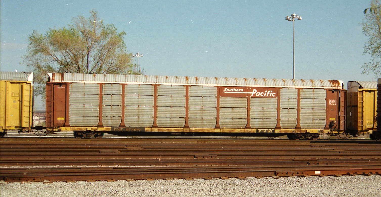 This page is dedicated to freight cars leased by the SP and marked with the railroad name and/or logo, but bearing other reporting marks. Many of these cars were auto racks on Trailer Train flat cars, but SP and SSW also leased double stack cars, covered hoppers and box cars from various leasing companies over time.
