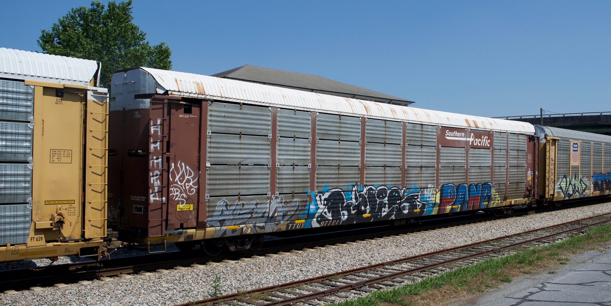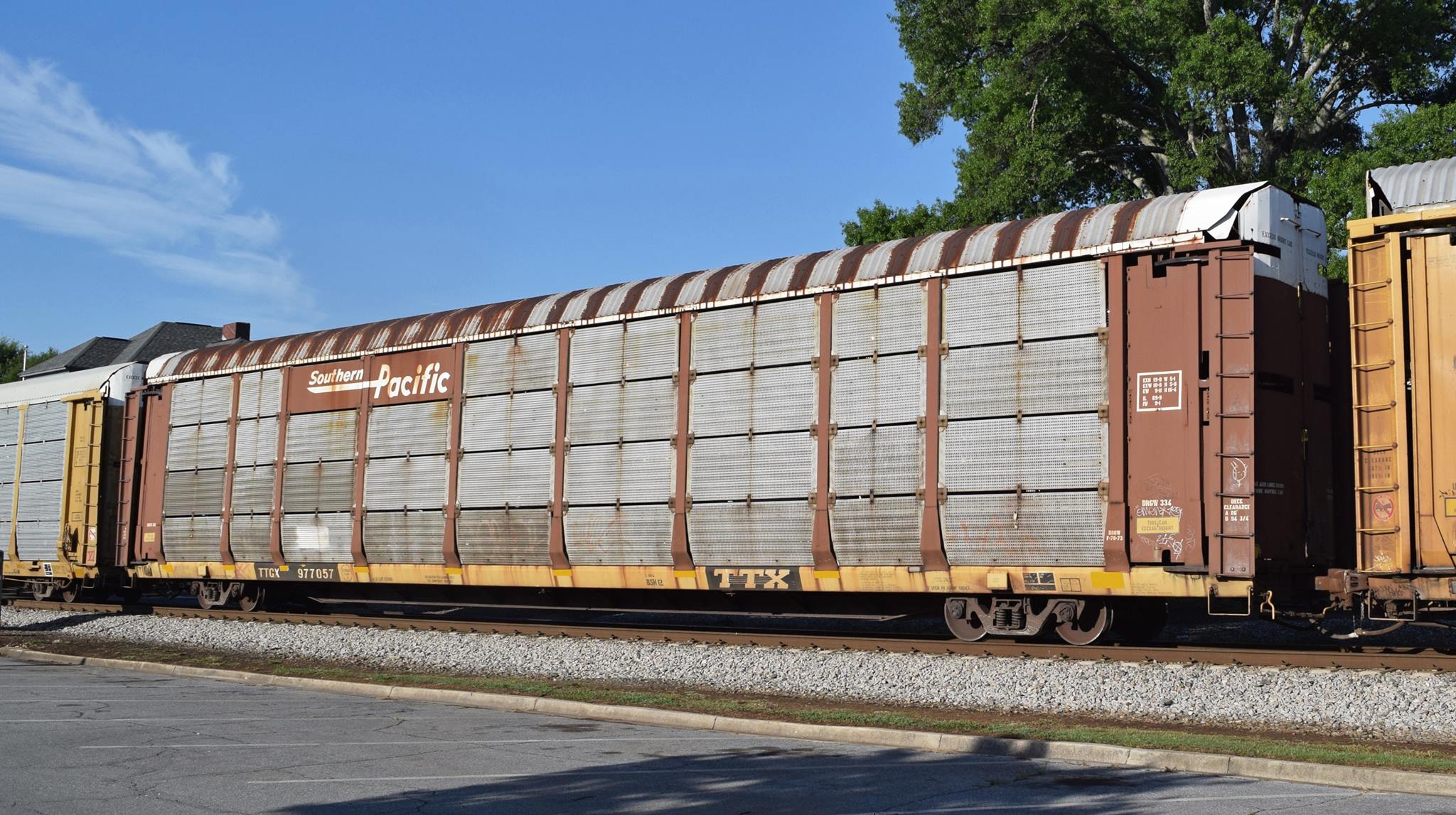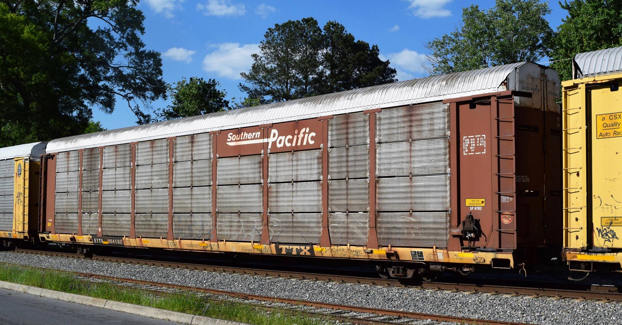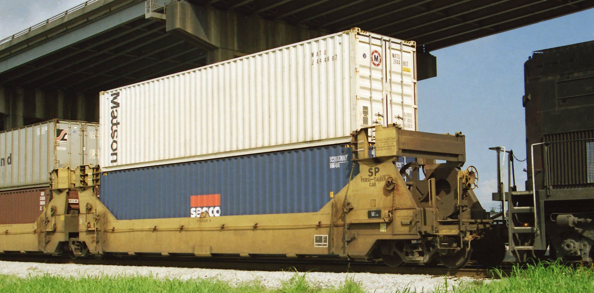 This page is dedicated to freight cars leased by the SP and marked with the railroad name and/or logo, but bearing other reporting marks. Many of these cars were auto racks on Trailer Train flat cars, but SP and SSW also leased double stack cars, covered hoppers and box cars from various leasing companies over time.