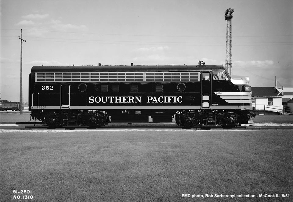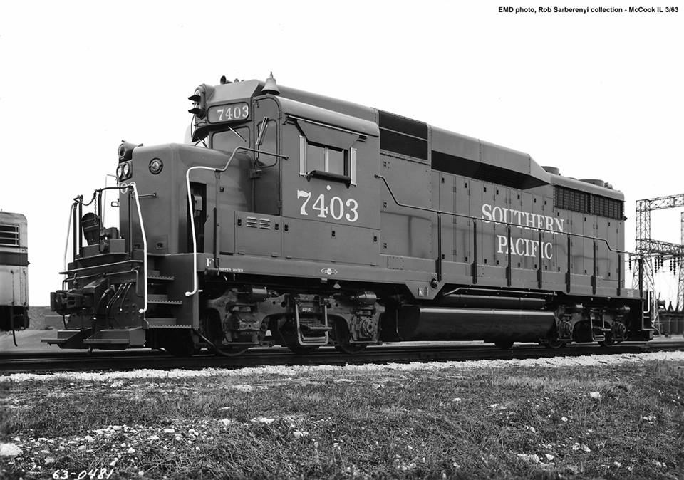 Here, we present a collection of photos taken by EMD over the years to showcase one or sometimes a few examples of a particular order of locomotives for a given road. EMD produced many locomotives of many models over the years for the SP. Through the generosity of SP fan Rob Sarberenyi, we present his collection of EMD SP builder's photos: